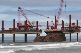 ..imagine the scene if you will, dark, raining and a force 5 minimum as we left the pontoon and proceeded past Portchester Castle (you've got to think what it must have been like for those Romans Soldiers all those years ago - used to Mediterranean temperatures and then faced with weather like we had in... in JUNE for goodness sakes!)Didn't get any better as we made our way with a whole load of other boats to the start line off Cowes, it did lighten up in the way that it became daylight, but no sun, rain continued, wind building - bashed our way across Stokes Bay (there was a huge container ship moored there - looked like a ship carrier - bright orange - subsequent research showed this to be semi-submersible vessel "Treasure", waiting for the jack-up barges Karlissa A and B).